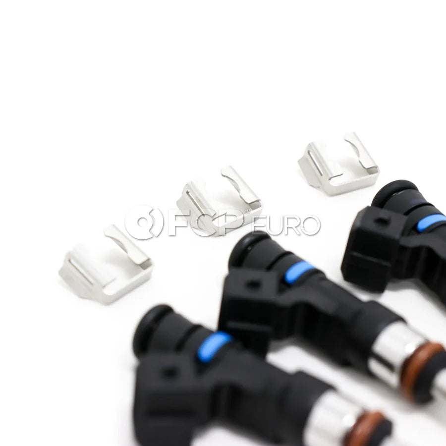 Replacement fuel injectors include o-ring 13641437476, o-ring 13647675557 and securing clip 13537528539.