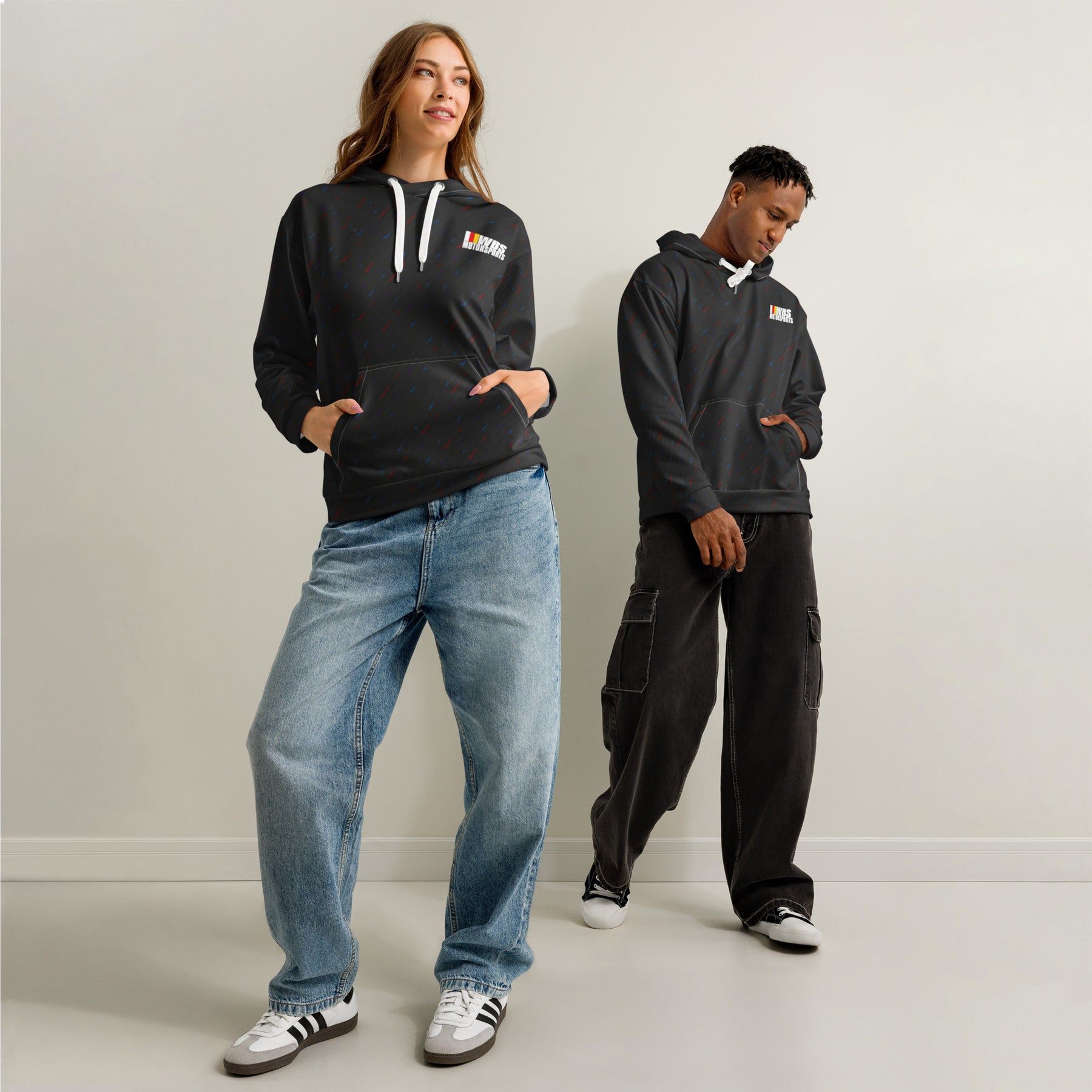 The WBS Rain hoodie brings one of BMW M's most iconic liveries to life in premium apparel form. Featuring the legendary Rain pattern—a design that has graced some of the most celebrated M cars in history—this hoodie lets you wear a piece of M heritage whether you're at the track, in the garage, or on the street.