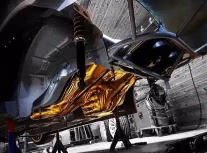 Our gold reflective heat blanket is commonly used to line and protect exhaust tunnels, fuel cells and more ensure the reliable running of your engine by keeping fuel temperatures under control. By lining the bulkhead in our gold reflective heat blanket, you can help ensure the comfort of the driver in the cockpit too by fighting heat transfer from the cockpit into the vehicle cabin.